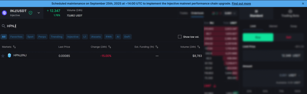 結論から言うと、$HPNJを交換できる唯一の場所は Injectiveチェーン上のDEX「Helix」 です。