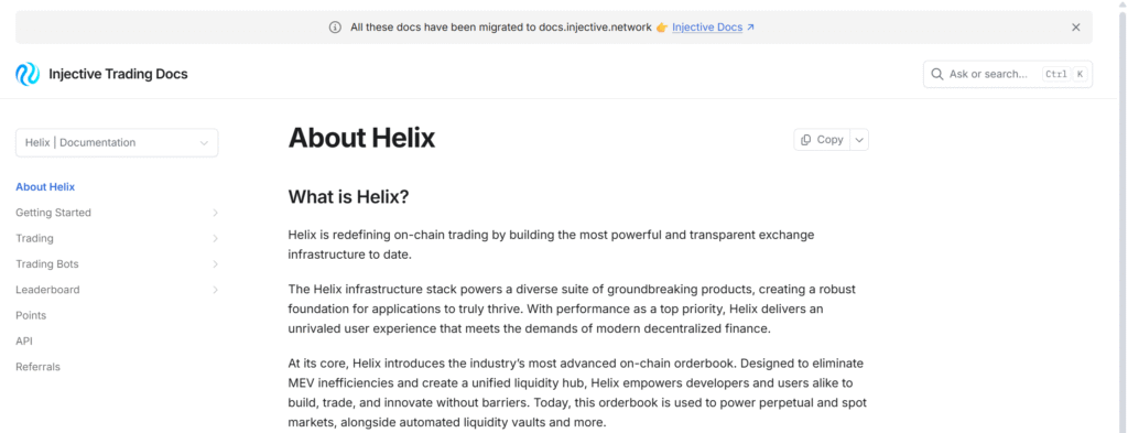 Helix公式サイト)は、Injectiveチェーン上で展開される分散型取引所(DEX)です。