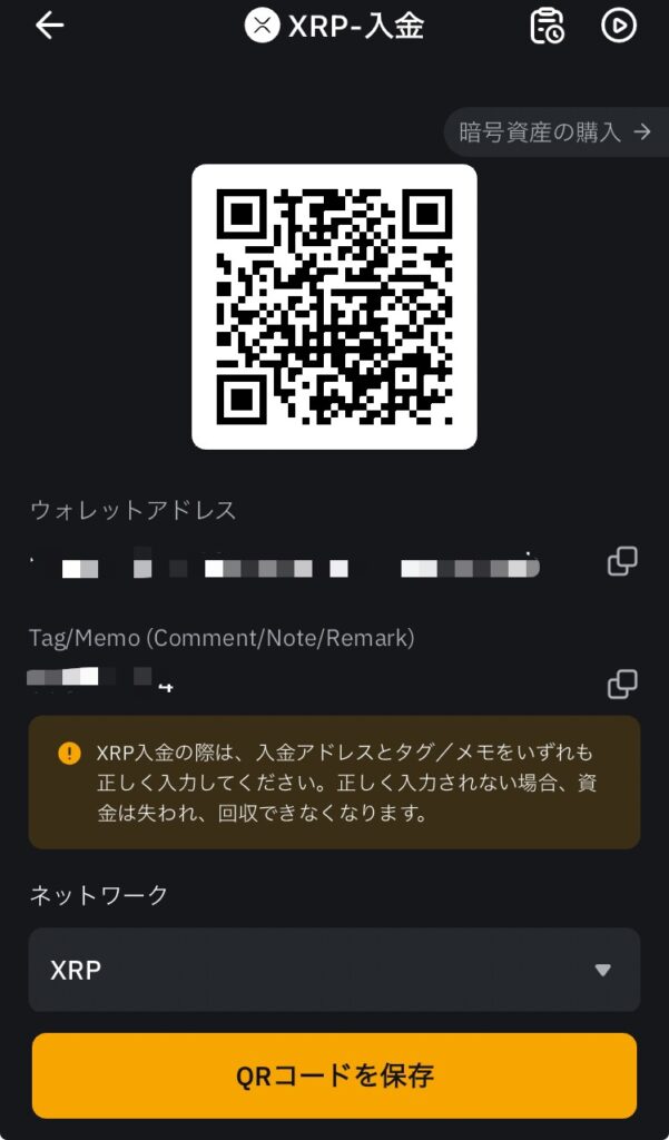 4. XRPの「ウォレットアドレス」と「Memo」をコピーしておく。