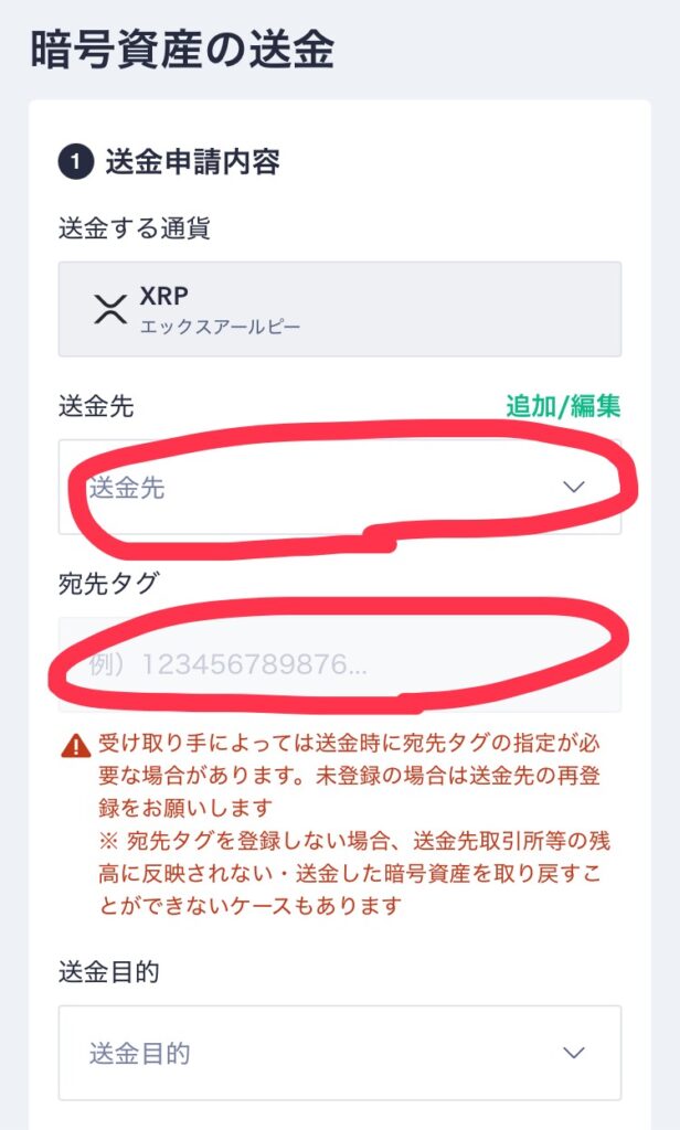 5. Coincheck側の送金画面に上記のウォレットアドレスとMemoを添付。ウォレットアドレスを送金先に、Tag・メモを宛先タグに入れてください。