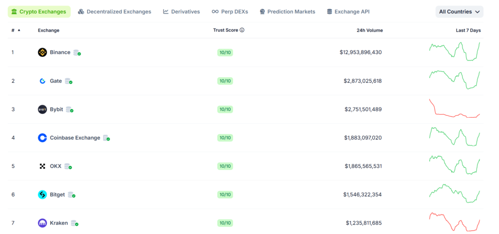 以下は、信用度別に仮想通貨取引所を並べたものです。信用度、取引量でもTop3に入ってくる取引所です。