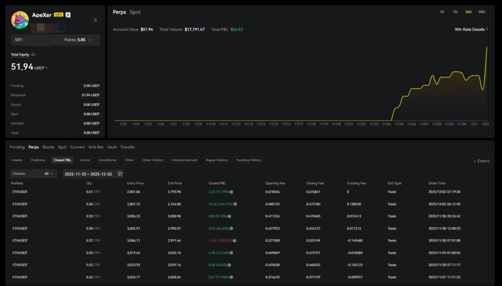 これを見たあなたは、10ドル→50ドルなんてまぐれじゃない?と思うかもしれませんが、他のPerpDEXでも同様に、その後も1週間で+400%とかになっているので、これは再現性の高い手法だと思っています。具体手法は、上記で紹介した記事をご参考にしてください。