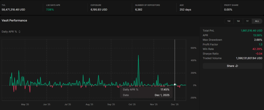 • Vault内の資金は 年利15%以上のAPRを獲得