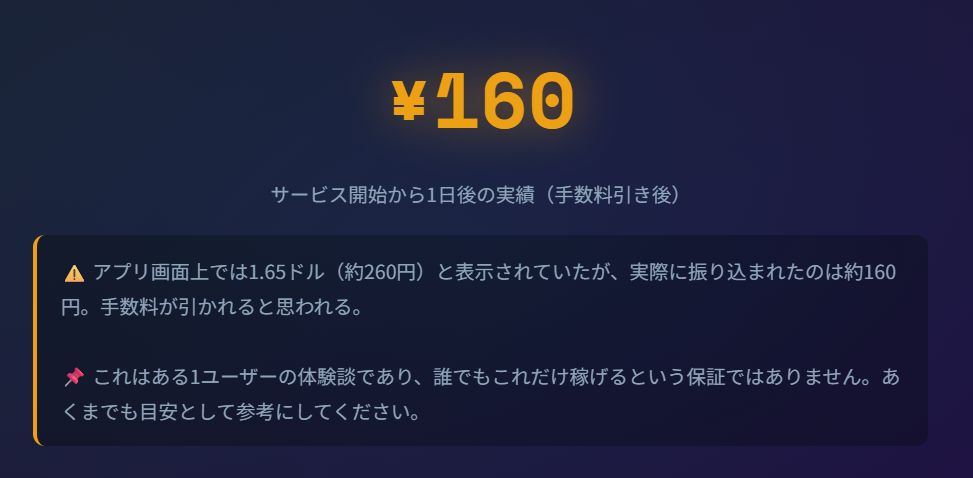 | 支払い通貨 | USDC(自動でウォレットに振込) |